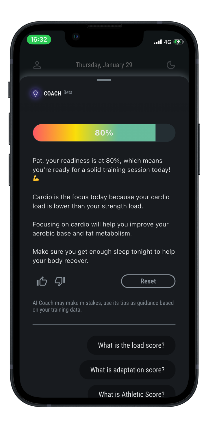 AI Coach can make mistakes. Use its tips as training guidance based on your historical training data. It does not give medical advice.