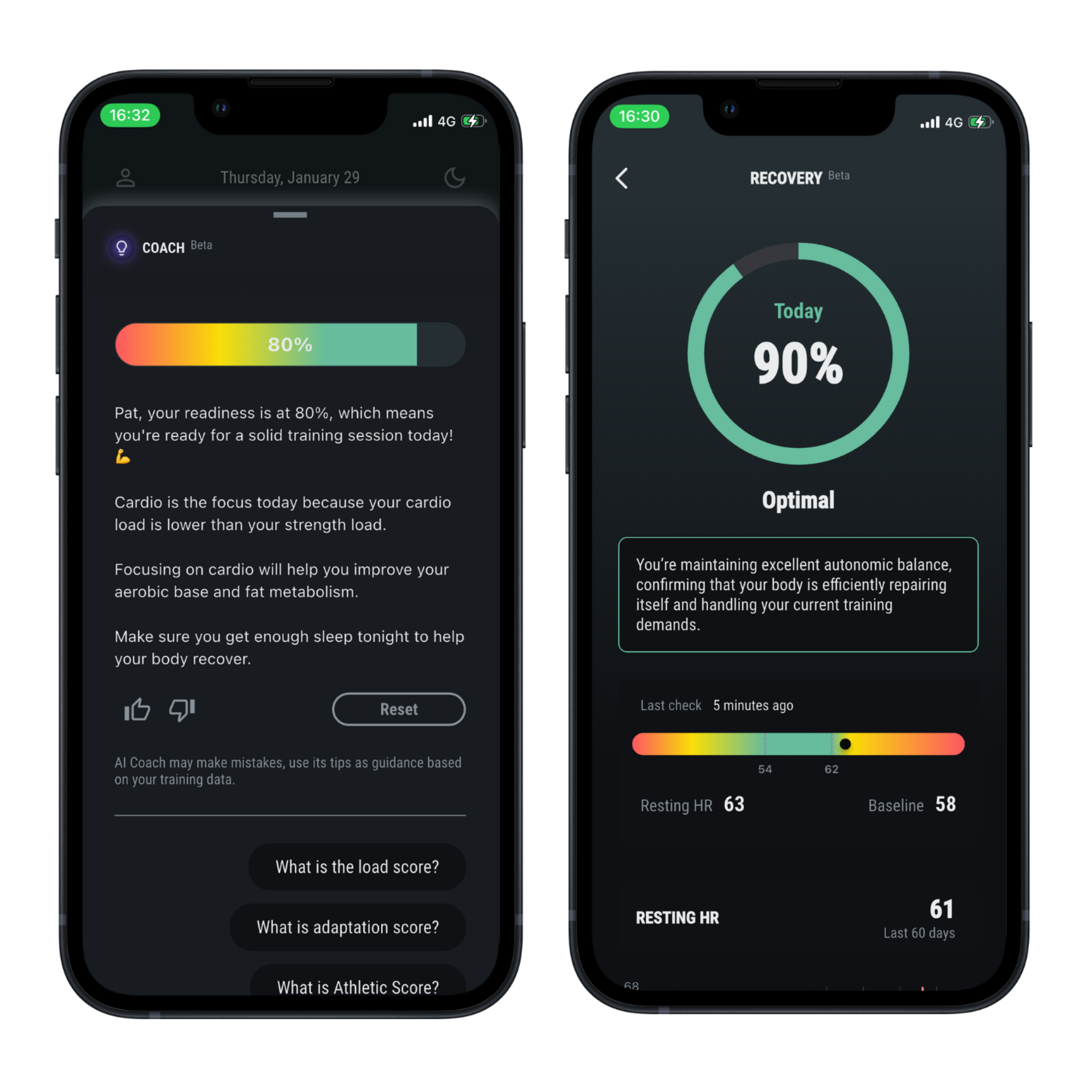 Check your morning resting HR using just your phone camera to get daily recovery score. See how last night's sleep compares to your recent trends, balancing accumulated fatigue from training and life.